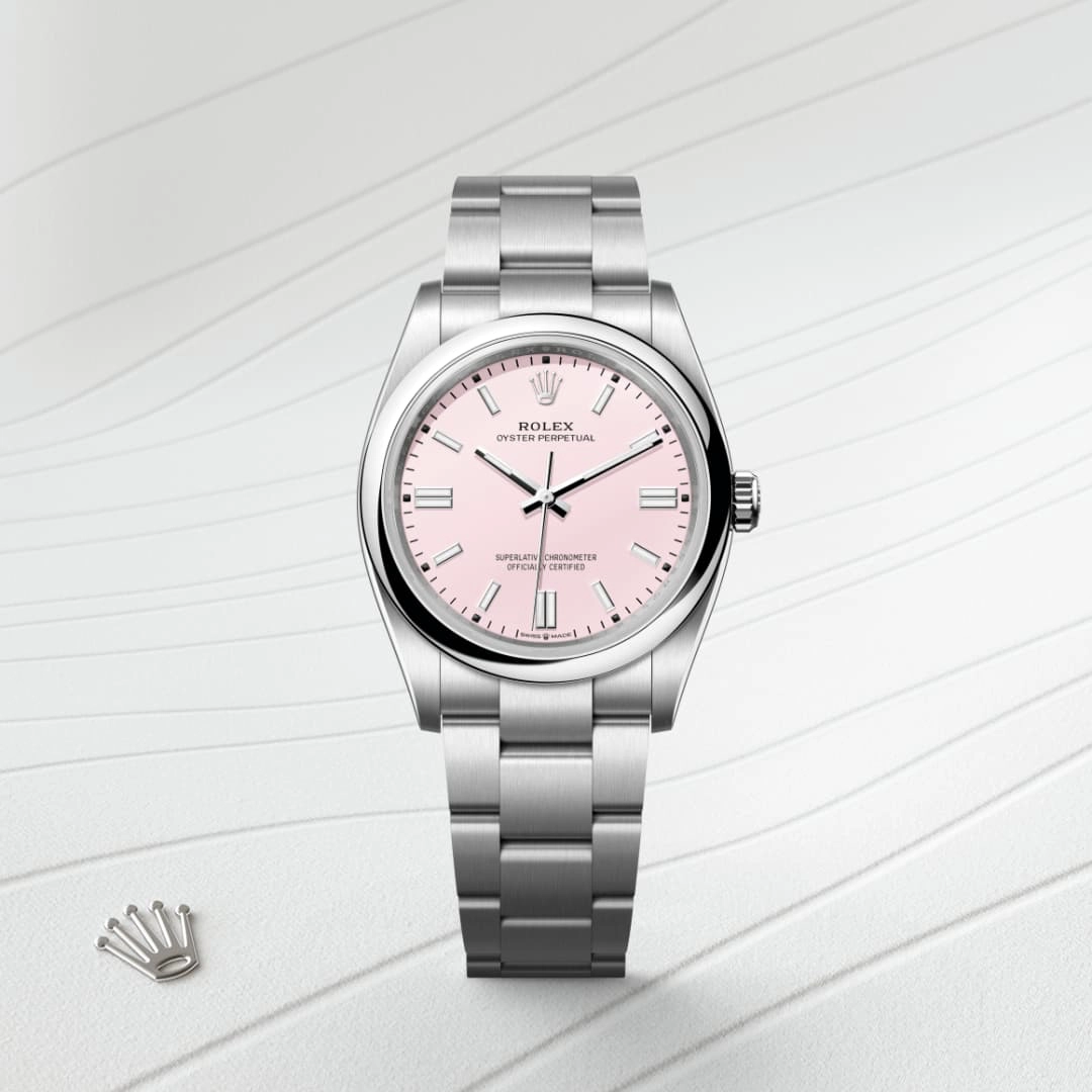 The Oyster bracelet is a perfect alchemy of form and function, aesthetics and technology. First introduced in the late 1930s, this particularly robust and comfortable metal bracelet with its broad, flat three-piece links remains the most universal bracelet in the Oyster collection. For the Oyster Perpetual models the Oyster bracelet is fitted with an Oysterclasp.